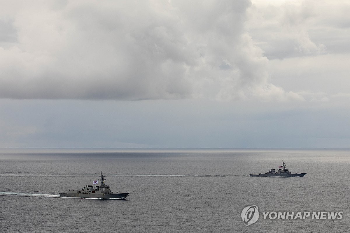 資料圖片:2025年韓美日“自由之刃”聯合軍演現場 韓聯社/南韓聯合參謀本部供圖(圖片嚴禁轉載複製)