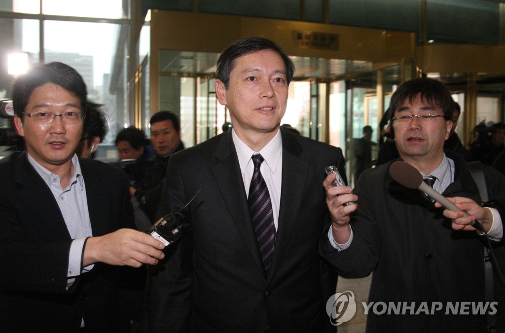 (서울=연하바뉴스) 안정원 기자 = 북핵 6자회담 일본측 수석대표인 사이키 아키타카(齋木昭隆) 외무성 아시아대양주국장(가운데)이 우리측 수석대표인 위성락 한반도평화교섭본부장과의 회담을 위해 12일 서울 도렴동 외교통상부를 방문하고 있다. 2010.3.12