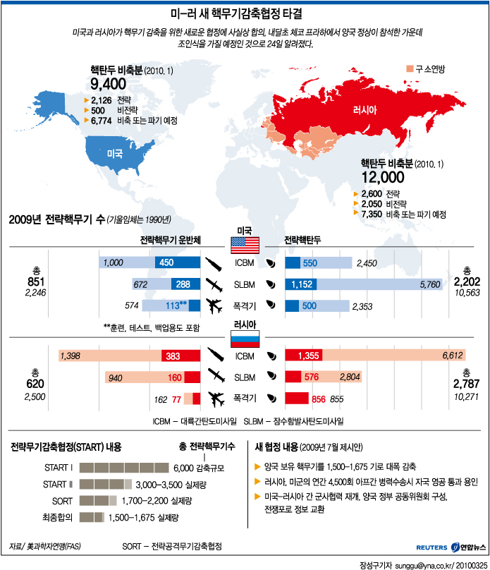 (베를린=연합뉴스) 김경석 특파원 = 미국과 러시아가 핵무기 감축을 위한 새로운 협정의 조인식을 체코의 프라하에서 개최할 것이라고 체코 정부가 24일 발표했다.