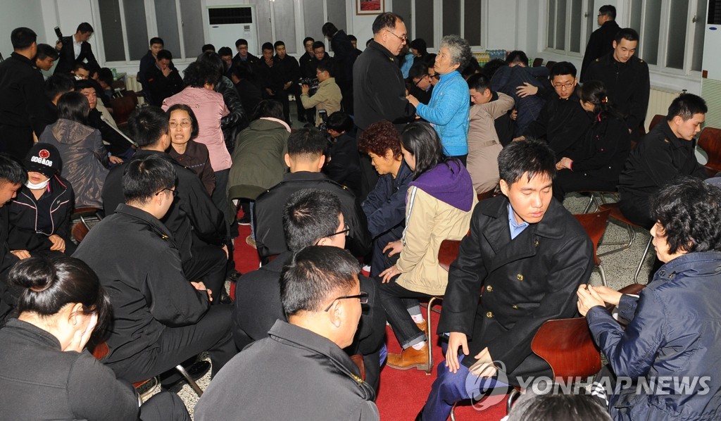 (평택 사진공동취재단=연합뉴스) 8일 평택 해군2함대 사령부 영내 정비지구식당에서 천안함 실종자 가족들이 생존 장병들과 만나 이야기를 나누고 있다.