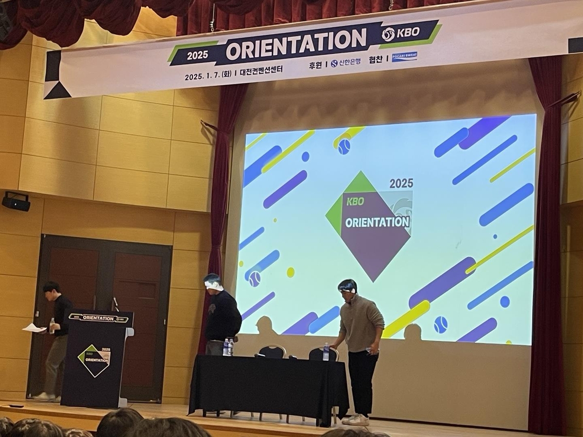 (대전=연합뉴스) 이대호 기자 = 오전 시간부터 이어지는 교육에 졸음과 애써 싸우던 2025 KBO 신인 선수들은 당장 올해부터 그라운드에서 만날 현역 선배들의 등장에 눈을 반짝였다.