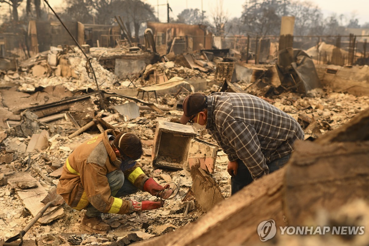 (로스앤젤레스·서울=연합뉴스) 임미나 특파원 이신영 기자 = 미국 서부 최대 도시 로스앤젤레스(LA)를 집어삼킨 산불이 9일(현지시간)로 사흘째 계속되고 있다.
