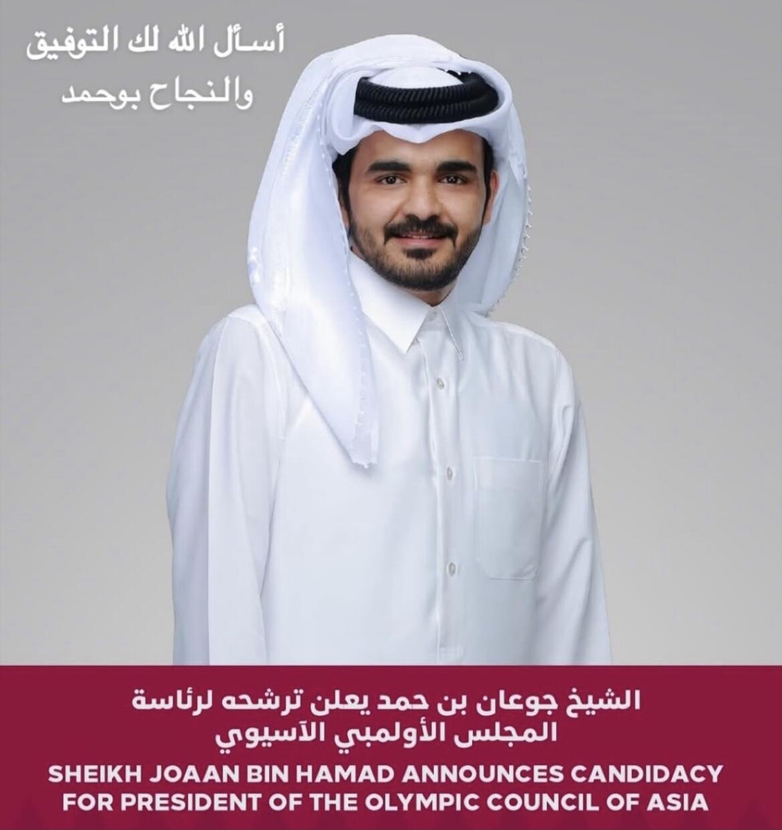 (서울=연합뉴스) 이동칠 기자 = 아시아올림픽평의회(OCA)가 내년 1월 총회 때 새 의장을 선출하는 가운데 셰이크 조안 빈 하마드 알 타니 카타르올림픽위원회 위원장이 후보로 단독 출마했다.