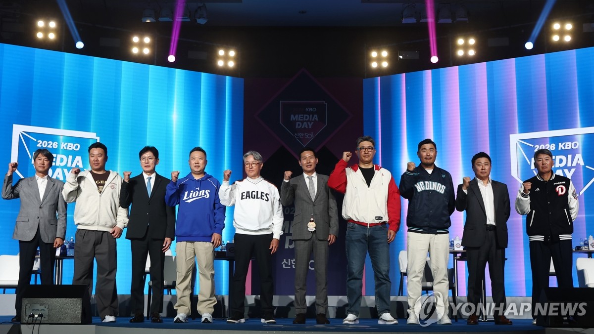 프로야구 10개 구단 감독과 선수들은 26일 서울 송파구 롯데호텔 월드에서 열린 2026 신한 SOL KBO리그 개막 미디어데이 & 팬 페스트에서 포스트시즌 진출 의지를 다졌다.