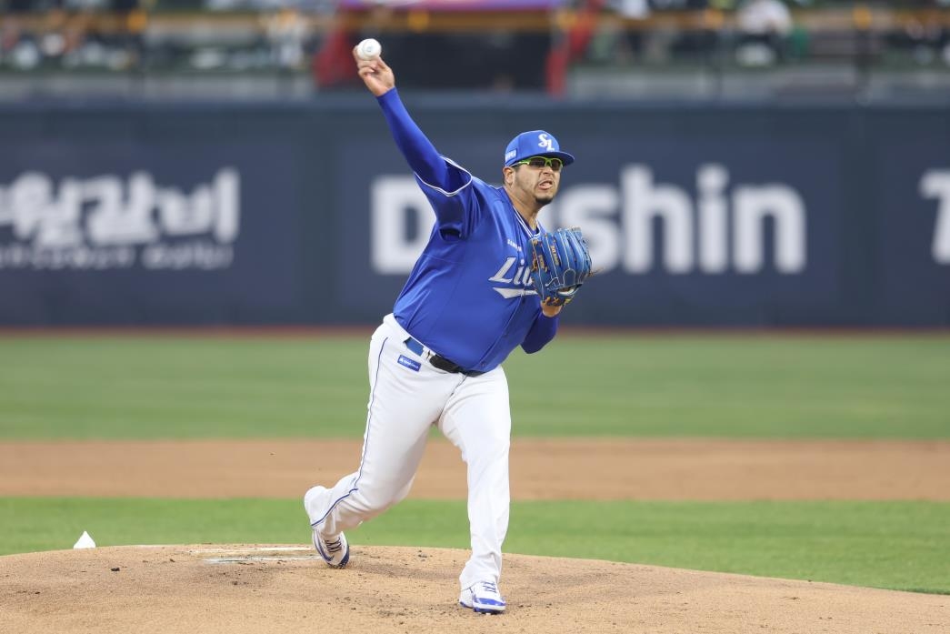 삼성 라이온즈 후라도가 3일 수원 케이티위즈파크에서 열린 프로야구 kt wiz와 방문경기에 선발 등판해 역투하고 있다. [삼성 라이온즈 제공. 재배포 및 DB 금지]