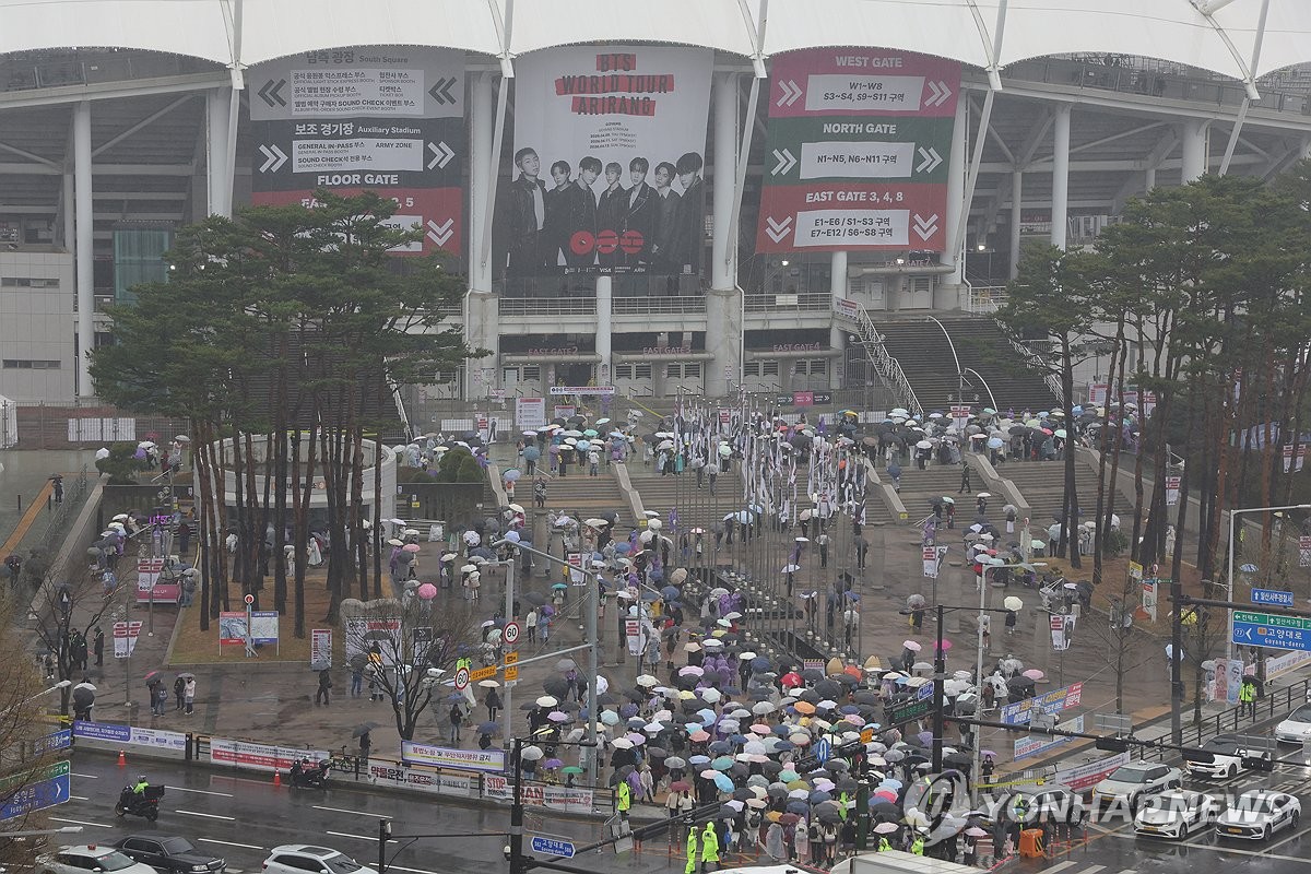 'BTS 월드투어 첫날' 보랏빛 물든 고양…봄비 속 질서있게 진행