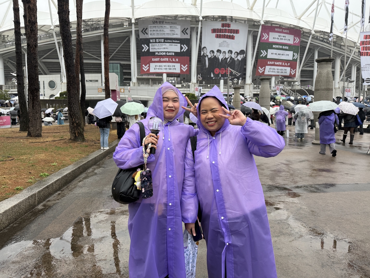 "BTS와 함께라면, 비 와도 행복해"…고양에 보랏빛 우비 물결