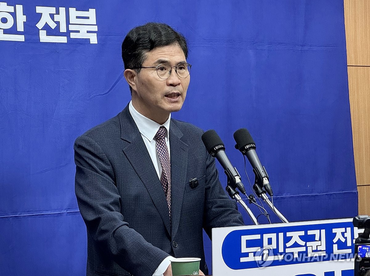 (전주=연합뉴스) 임채두 기자 = 전북특별자치도지사 출마 예정자인 더불어민주당 이원택 의원이 1일 전북도의회에서 기자회견을 하고 있다. 2026.4.1 doo@yna.co.kr