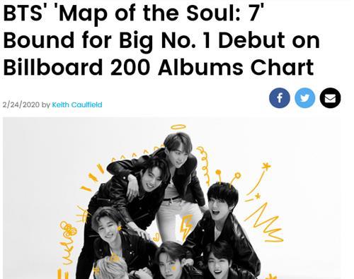 ÁúÁpªÀºº¸2¤ë25¤é¹q ¨¾¼u¤Ö¦~¹Î¡]BTS¡^¾ÌÂÇ¥¿³W¥|¿è¡mMap of the Soul: 7¡n¦³±æ²Ä¥|¦¸µn³»¬ü°ê¤½§iµP¡A¦A¦¸«¼gK-POP¾ú¥v¡C