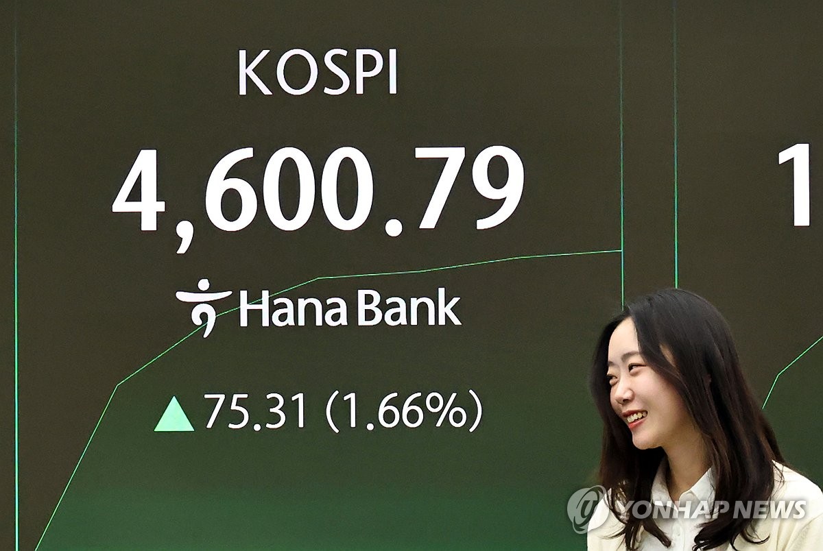 1¤ë7¤é¡AKOSPI½L¤¤¥v¤Wº¯}4600ÂIÃö¤f¡C¹Ï¬°ºº¸¤¤°ÏÁú¨È»È¦æÁ`¦æ¥æ©ö¤jÆUªº¿Ã¹õÅã¥Üªº¹ê®É¼Æ¾Ú¡C ÁúÁpªÀ