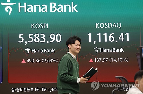 ÁúÁpªÀºº¸3¤ë5¤é¹q ¦b¤¤ªF§½¶Õ¤£Â_¤É¯ÅªºI´º¤U¡A«nÁúºî¦XªÑ»ù«ü¼Æ¡]KOSPI¡^©M«nÁú³Ð·~ªO«ü¼Æ¡]KOSDAQ¡^5¤é±j¶Õ¤Ï¼u¡A¦¬½L¸û«e¤@¥æ©ö¤é¤À§O¤jº¦9.63%©M14.1%¡C
